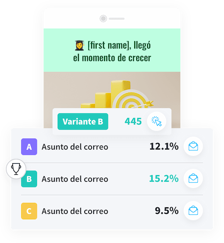 Aumenta las tasas de apertura y de clics con una optimización respaldada por datos. Continúa realizando pruebas A/B para identificar las palabras y frases que mejor resuenen en tu audiencia.